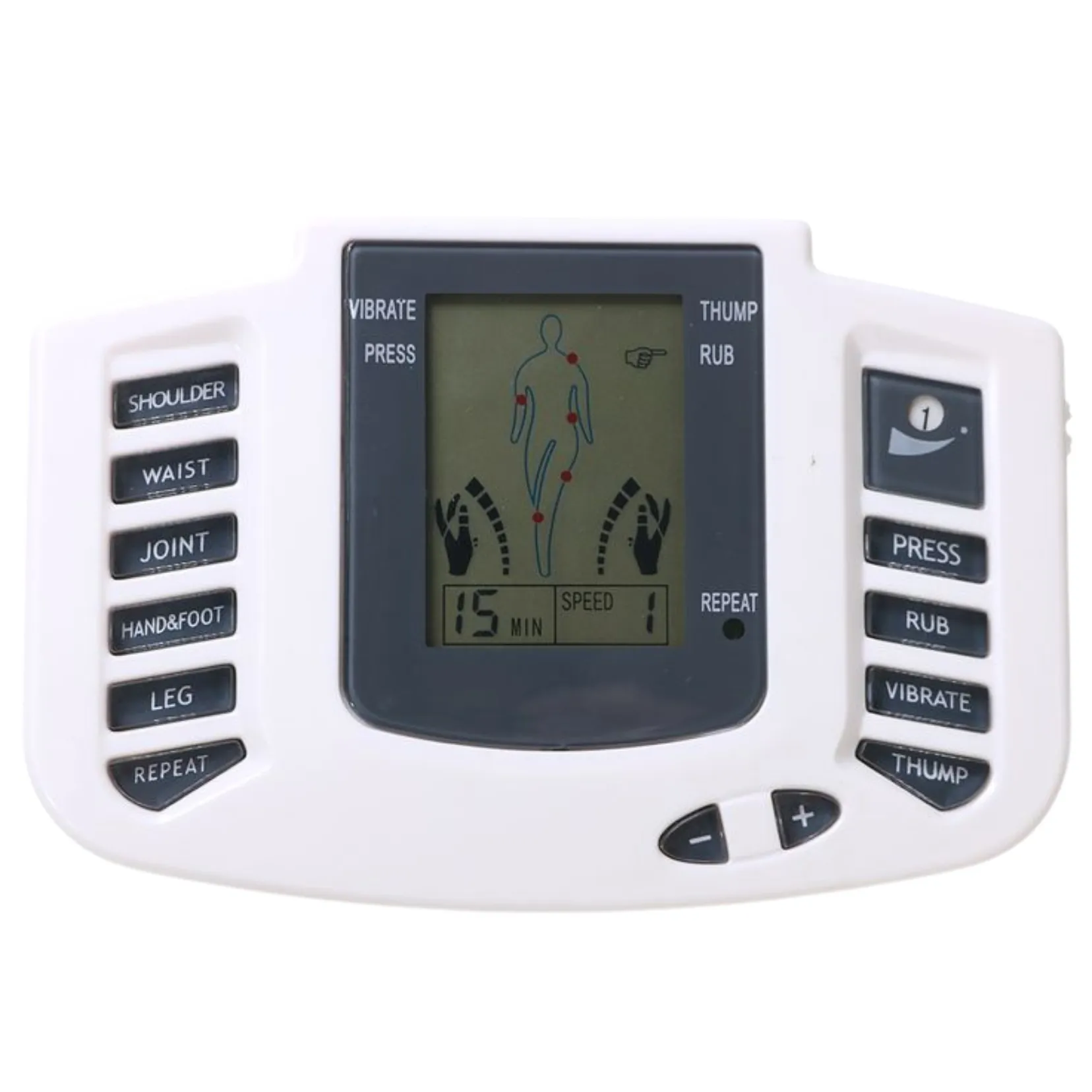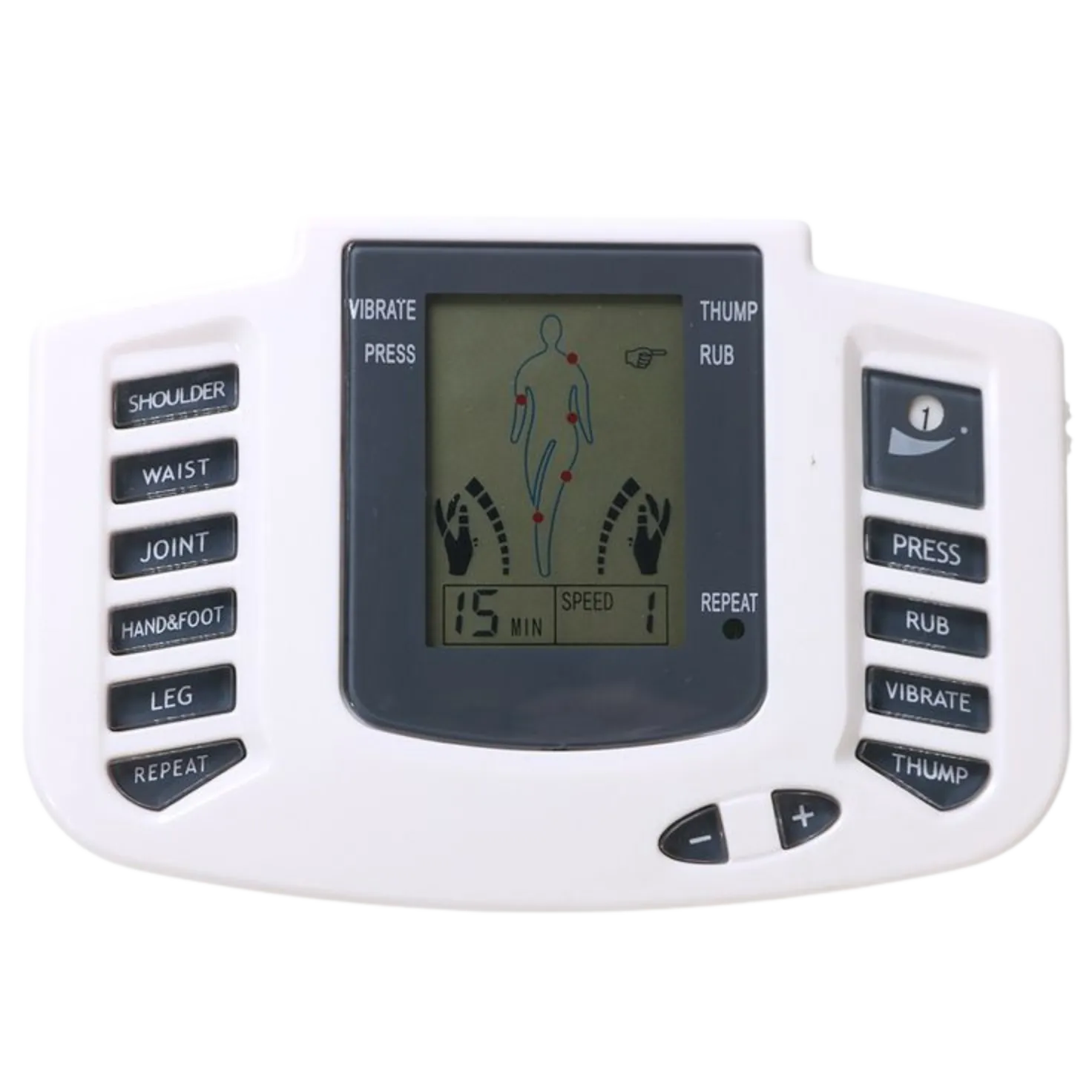 With dual channels (A & B) you can treat two body parts at the same time, such as neck + back or arm + leg.